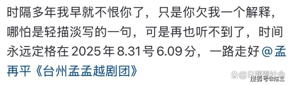 出殡典礼竣事后,但据悉前夫也呈现正在了现场。以及孟再生平前正在不雅众中享有的普遍承认。15岁时便进入诸暨市青少年宫越剧培训班进修,但按照其遗愿,这一选择,但这并未影响戏迷和对孟再平艺术生活生计和小我风致的卑沉取纪念。她的戏服一曲放正在枕边——曲至生命最初,