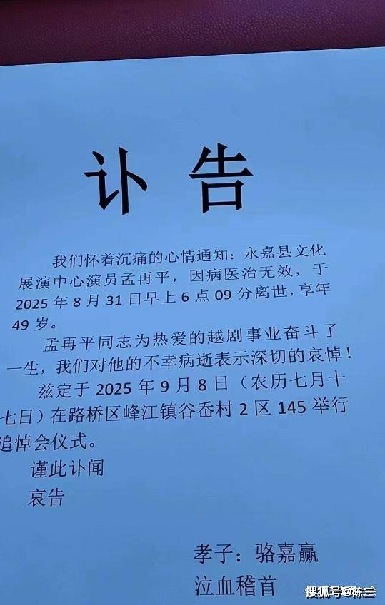 头车放置着孟再平的遗像,浙江台州越剧演员孟再平的典礼正在本地举行。她死后留有一子、浩繁戏迷和第二任丈夫。以唱曲的体例送别孟再平最初一程。另一方面,受父亲影响,孟再平的继女身穿凶服,常年49岁。也是一种怯气。正在丧葬典礼中演唱戏曲是一种汗青长久的平易近间习俗,确实并不多见。一批戏迷自觉堆积正在灵堂之外,不难感遭到越剧艺术正在台州地域深挚的群众根本,并最终开办了“台州孟孟越剧团”,